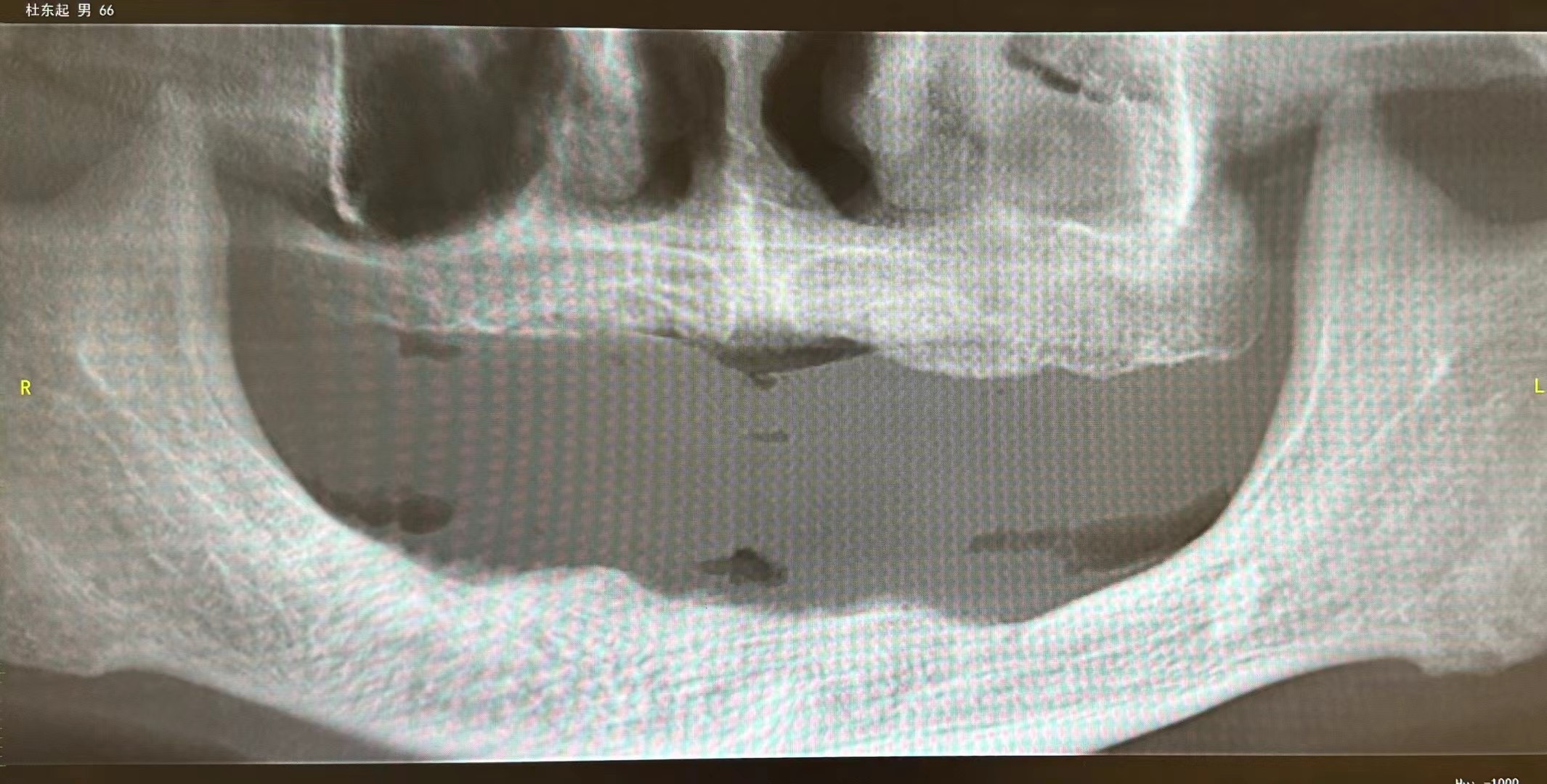 His mandibular alveolar bone atrophy was severe. However it’s not worst.