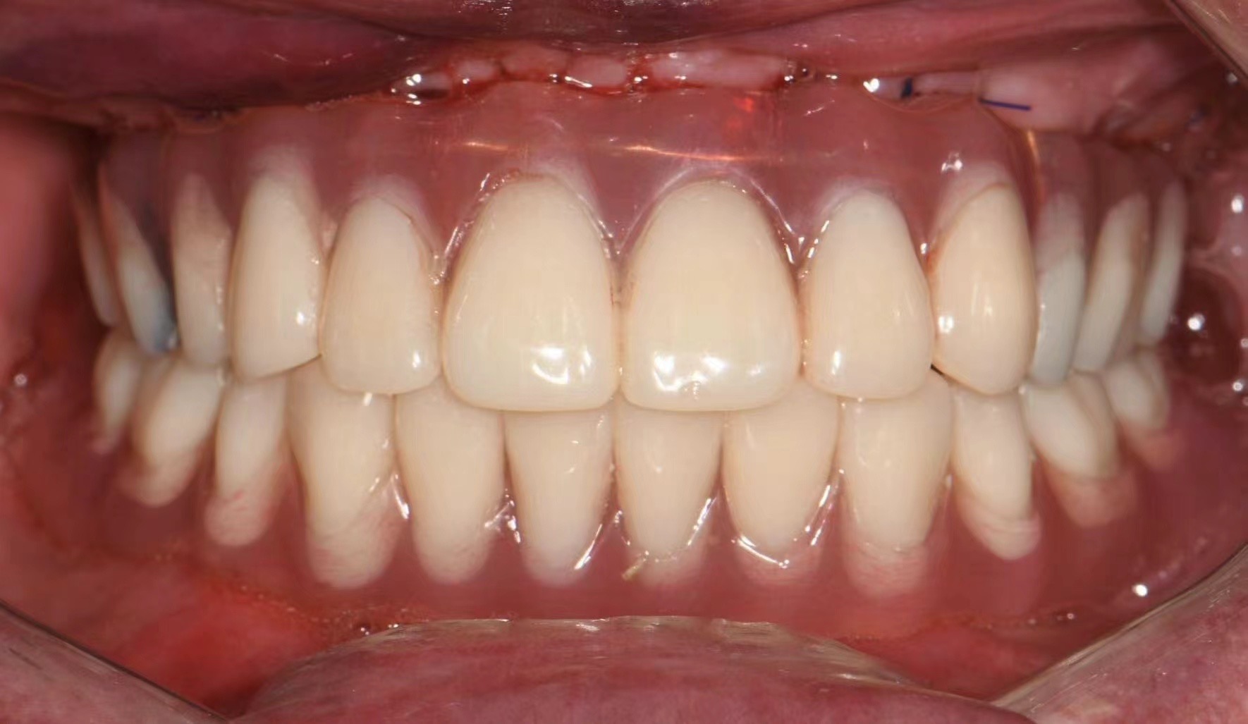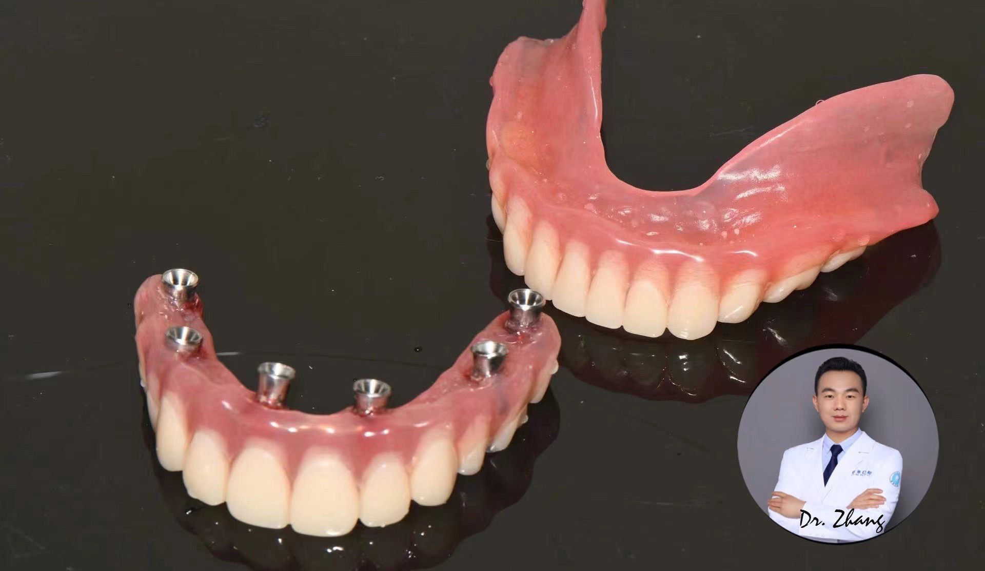 After the surgery, CDT Mr. Tao made this implant immediate dentures for the patient. So the patient can have his temporary teeth while the real job making.